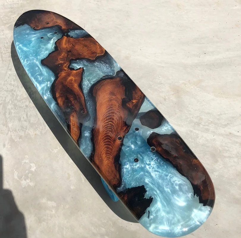 Each skateboard is a one-of-a-kind piece, with the natural grain of the wood and the swirling patterns of the resin creating a truly mesmerizing aesthetic. It serves as a functional mode of transportation and doubles as a work of art that showcases the beauty of nature and craftsmanship.